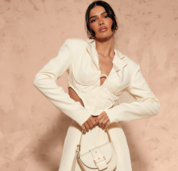 Cream Woven Corset Under Wire Cropped Blazer