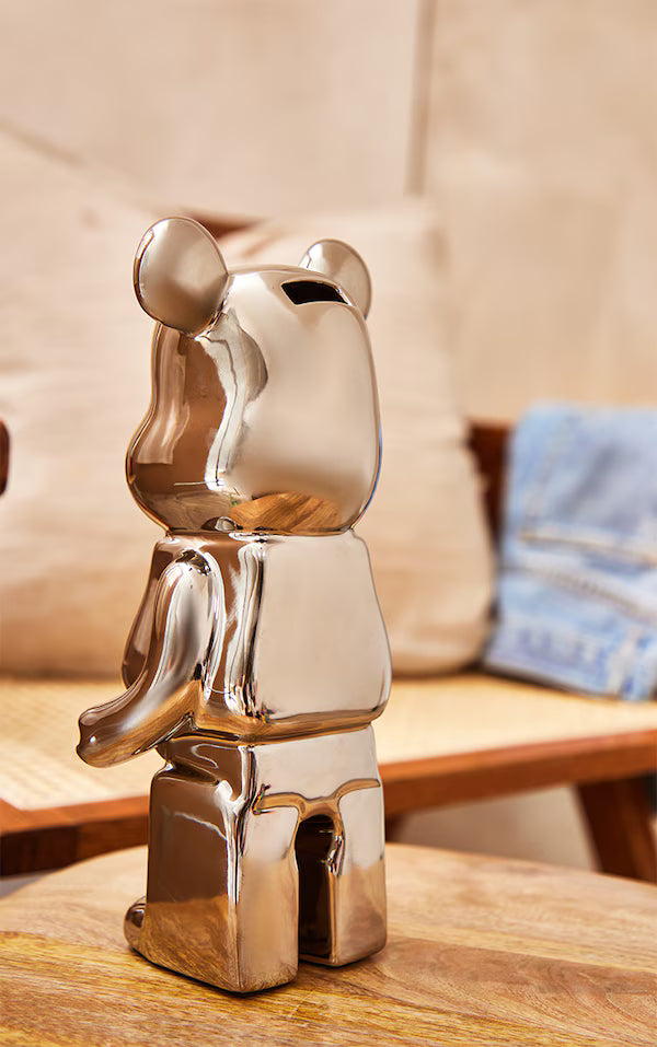 Create the perfect aesthetic in your home with this large silver gloss bear ornament. This ornament is made from a large silver gloss material in a bear style, what's not to love? Place in any room to instantly elevate the vibe.