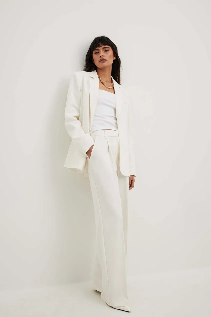 These suit pants feature a fabric with contrast-colored threads and a lined high waist with belt loops and a zip and hook closure. They have side slanting pockets, mock back pockets and a relaxed wide fit. These suit pants comes in white. Influencer: @lisambengtsson is 160 cm tall and is wearing size EU 36 (UK 10, US 6, small).