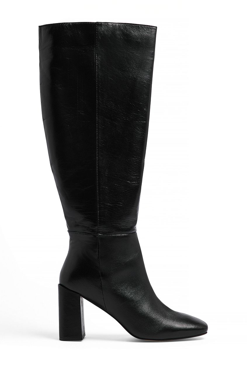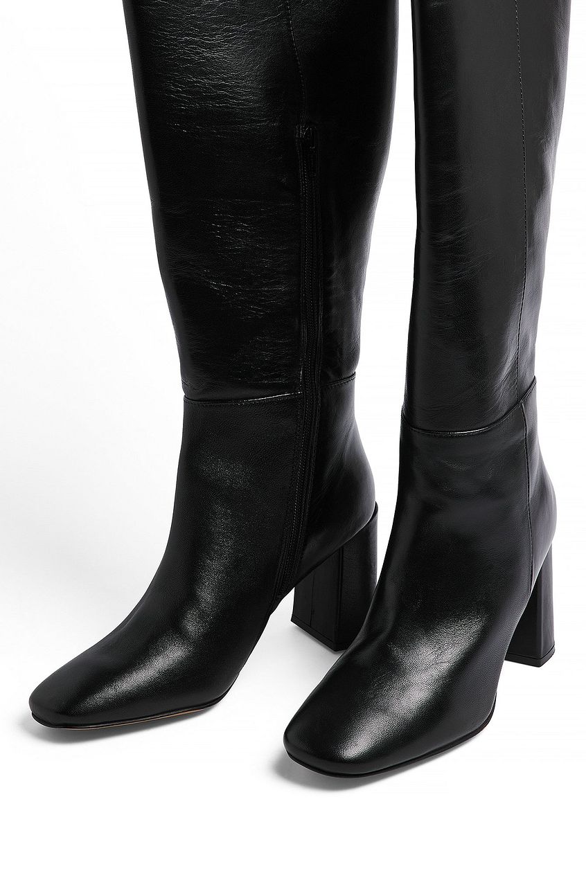 These boots feature a knee high design. They have a side zipper closure and squared high heels. These boots feature a luxurious feel. Measurements in size 39: Shaft circumference around the calf: 40,7 cm / 16.02 in. The shaft height on this boot measures 44 cm / 17.3in in size EU39. The shaft height might differ from size to size. Heel Height: 8 cm / 3.14 in. These boots come in black.