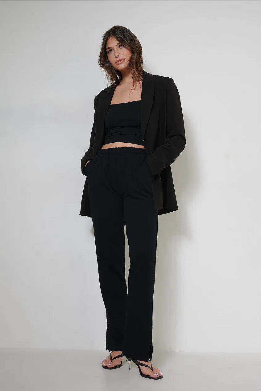 This singlet features a square neckline, adjustable, thin shoulder straps and cropped length. This singlet comes in black.