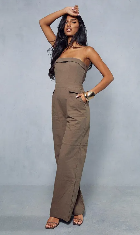 Utility Detail Bandeau Wide Leg Jumpsuit
