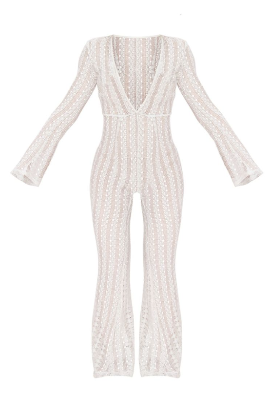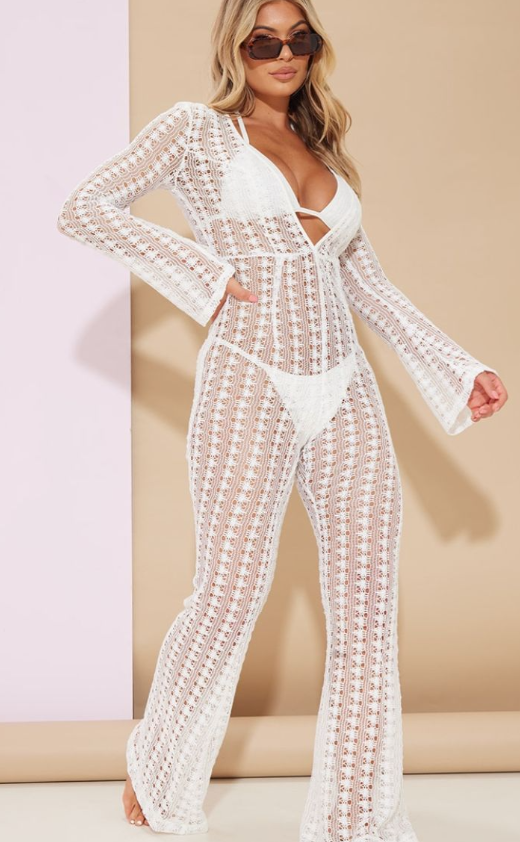Make a statement this vacay season with this unreal jumpsuit. Featuring a white crochet material with a plunge neck line, we are obsessed. Layer over your fave bikini and add your go-to sunnies for a vibe that will get everyone talking.