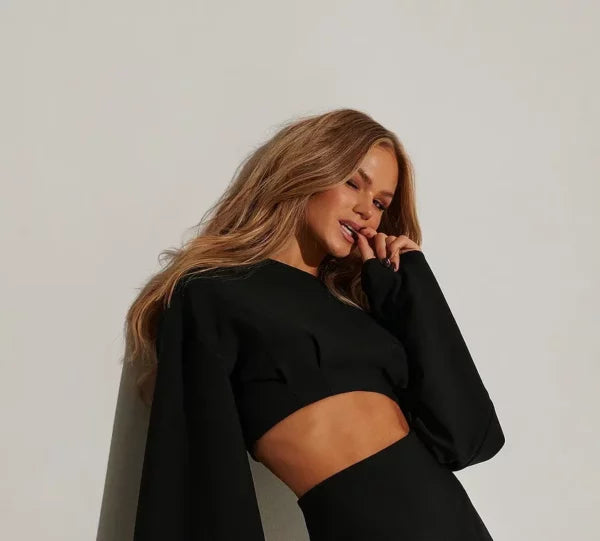 Wide Sleeve Cropped Top Black